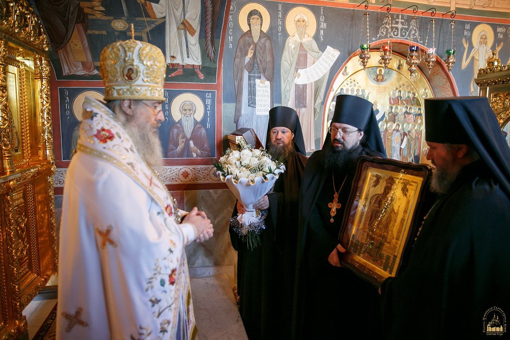 По окончании богослужения многочисленная братия, насельники скитов, духовные чада и паломники поздравили своего духовного отца, наставника и архипастыря с юбилеем.