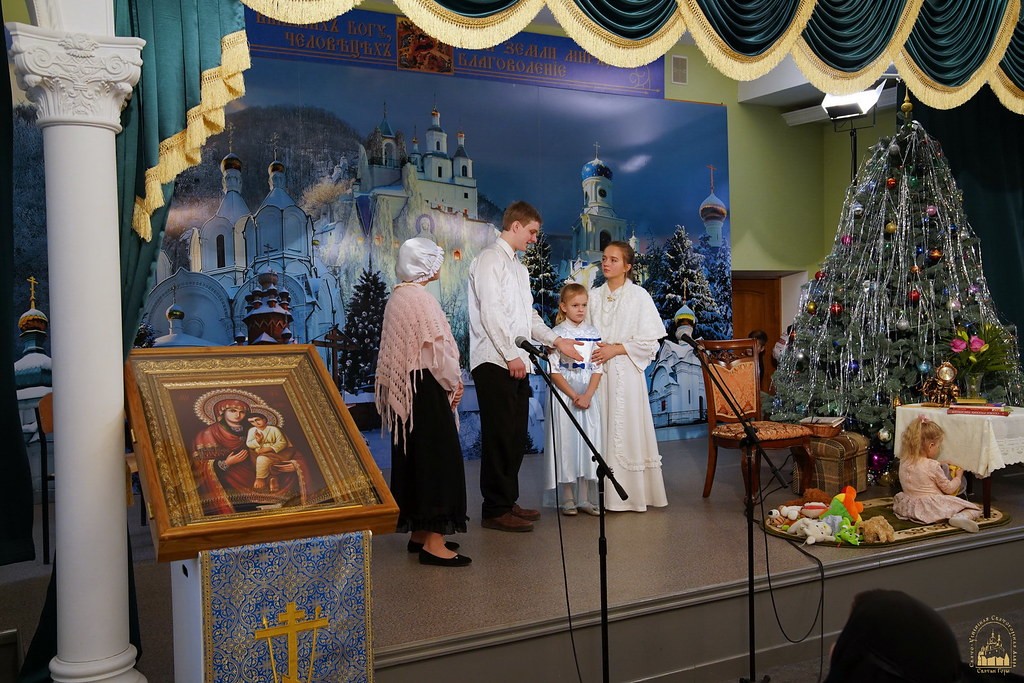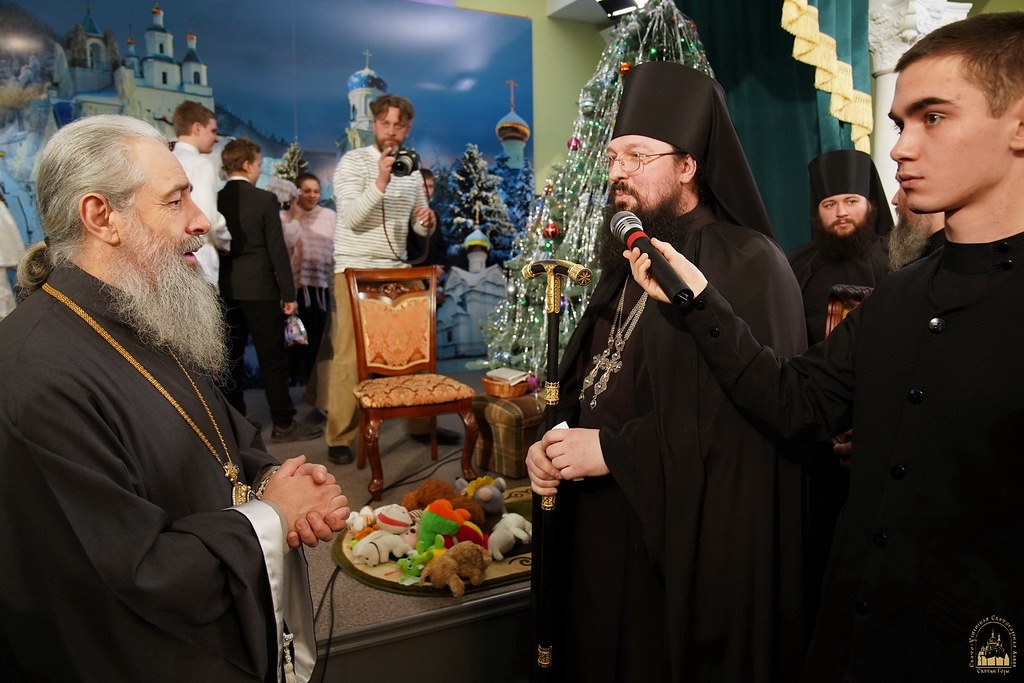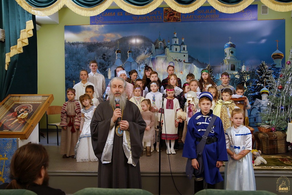 Мероприятие началось общей молитвой, после чего на сцену вышли учащиеся воскресных школ при лаврских скитах в селах Богородичное и Долина. Руководитель воскресной школы монахиня Агния (Кучеренко) перед началом выступления обратилась с благодарственным словом к владыке Арсению и поздравила с 25-летием наместничества.