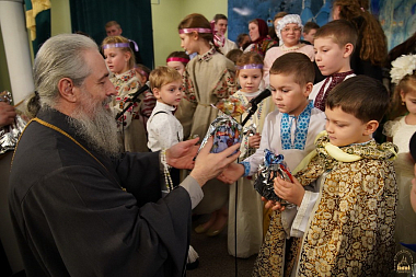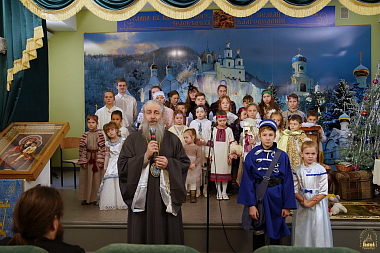 После просмотра владыка Арсений поблагодарил ребят за исполненные глубокого смысла сценки, отметил способности молодых артистов и ту искренность, с которой дети исполняли свои роли, поздравил с рождественскими праздниками и вручил подарки.