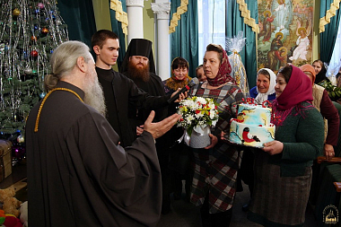Далее произнесли слова благодарности и по случаю четвертьвекового наместнического служения владыку Арсения поздравили: скитоначальник скита в честь святителя Иоанна Шанхайского и Сан-Францисского в с. Адамовке архимандрит Всеволод (Георгица) и старшая сестра этого же скита монахиня Евдокия (Радул) с сестрами; монахиня Амвросия (Коваль), старшая сестра Богородичанского скита в честь иконы Божией Матери «Всех скорбящих Радость», с сестрами обители; архимандрит Феофан (Люкшин), скитоначальник Свято-Георгиевского скита в с. Долина, со своими прихожанами.