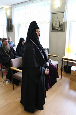 Матушка игумения обратилась ко всем присутствующим с ответным приветственным словом, в котором сказала о любви к Богу и людям как исполнении Закона Божиего.