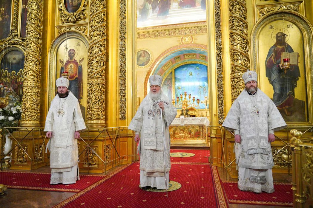 Ну, и безумные правители думали, что Православию скоро настанет конец. И самый, наверное, безумный и смешной правитель из всех, кто когда-либо возглавлял Русь, провозгласил, что к 1980 году все будет закончено. Не будет больше ни веры, ни «попов», как он сказал, «а последнего из таких по телевизору покажу». Но этот правитель остался только в анекдотах. А мы с вами, наследники тех, кто прошел тяжелейшие испытания безбожного времени (а многие из нас и сами застали это время), в этом соборе города Москвы, который был кафедральным во времена безбожия, вновь и вновь обращаемся к Господу и в престольный праздник особенно благодарим Спасителя нашего, Его Пречистую Матерь за все те милости, которые явлены были над народом нашим, над Церковью нашей. За то время, в котором сейчас живем, когда без всякого стеснения и без всякого сомнения можем исповедовать свою веру и в храме, и публично, и где угодно. Мы дожили до того времени, когда и главой нашего государства является православный, искренне, не по протоколу, а по убеждениям православный вождь — Владимир Владимирович. И все это, конечно, свидетельствует о том, что чудо Божие произошло. По молитвам святых угодников, по молитвам мучеников и исповедников явилась благодать Божия над нашей некогда измученной безбожием страной. И сегодня мы с радостью, в душевном мире и спокойствии совершаем богослужение, молимся и благодарим Господа за ту милость, которую Он явил нам, нынешнему поколению православных людей, имеющих возможность беспрепятственно посещать Божий храм, причащаться Святых Христовых Таин, назидаться словами, которые слышим в храме, и укрепляться в нашей вере.