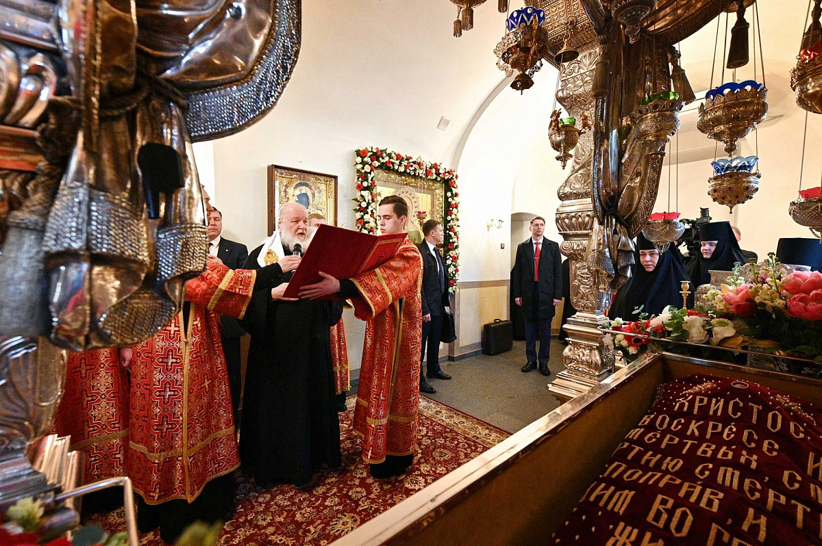 2 мая 2019 года, в четверг Светлой седмицы, день памяти блаженной Матроны Московской, 67-ю годовщину преставления и 20-ю годовщину канонизации блаженной старицы, Святейший Патриарх Московский и всея Руси Кирилл совершил Литургию в Покровском ставропигиальном женском монастыре в Москве. По окончании богослужения Предстоятель Русской Церкви обратился к верующим со словом.