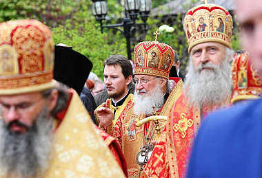 Сегодня, вспоминая это страшное событие, мы молимся о наших братьях и сестрах на Украине. Мы возносим заупокойную молитву о 48 мучениках, заживо сожженных в Одессе. Мы молимся, чтобы Господь благословил жизнь братской Украины. Мы связываем также нашу молитву с надеждой на то, что новое руководство, которое пришло по итогам выборов к власти на Украине, будет в полной мере учитывать великую 1000-летнюю православную традицию Украины, Святой Руси, Киевской Руси и будет в полной мере уважать законный выбор в пользу единственной канонической Украинской Православной Церкви, в которой реально присутствует Божественный дух и которая молитвенно предстоит Богу, вознося молитву за страну и за народ.