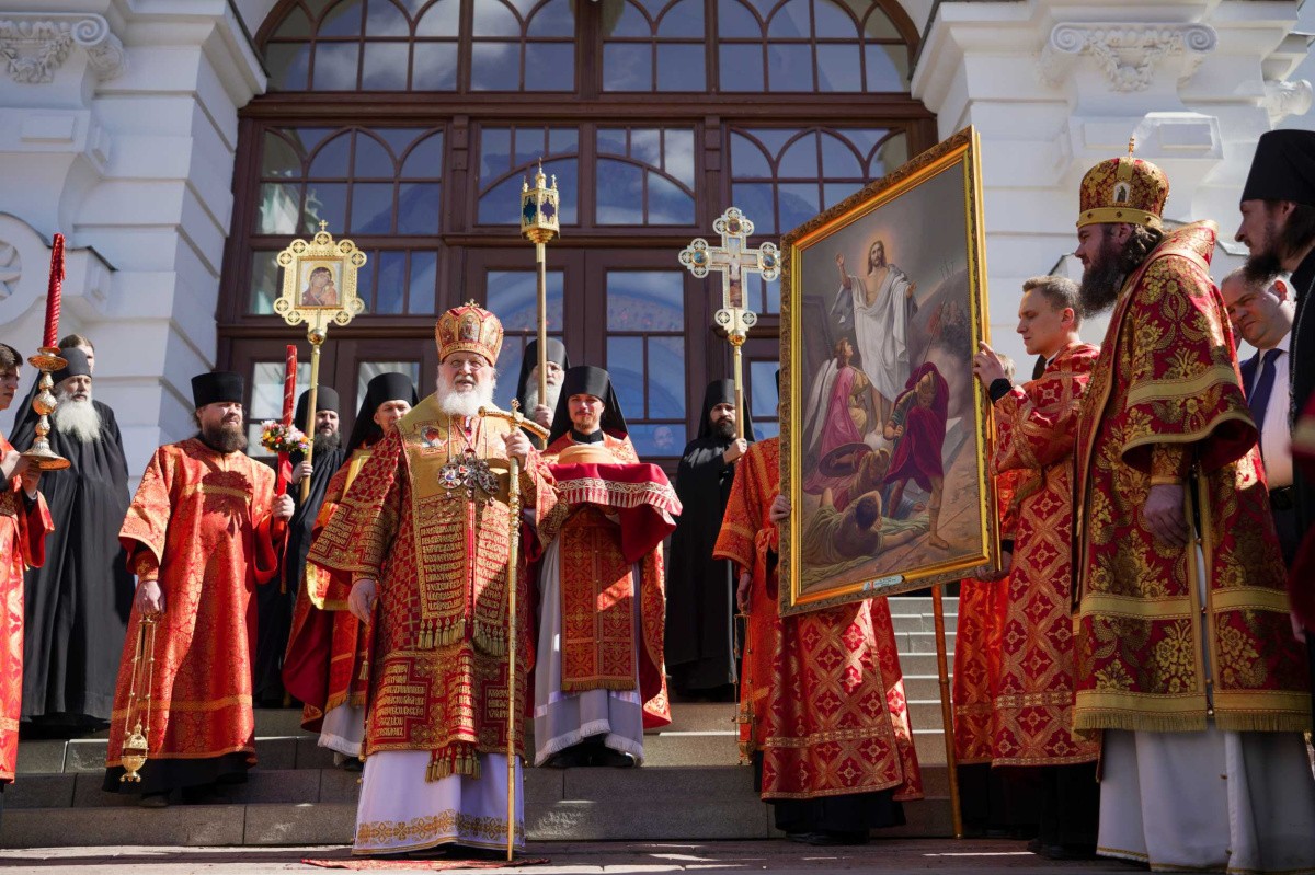 Хотел бы приветствовать всех собратьев архипастырей, духовенство и вас, мои дорогие паломники и постоянные прихожане сей святой обители, и поздравить с замечательным праздником. Мы празднуем сегодня Пасху Божию здесь, на этой святой земле, в сердце русского Православия — в Троице-Сергиевой лавре.