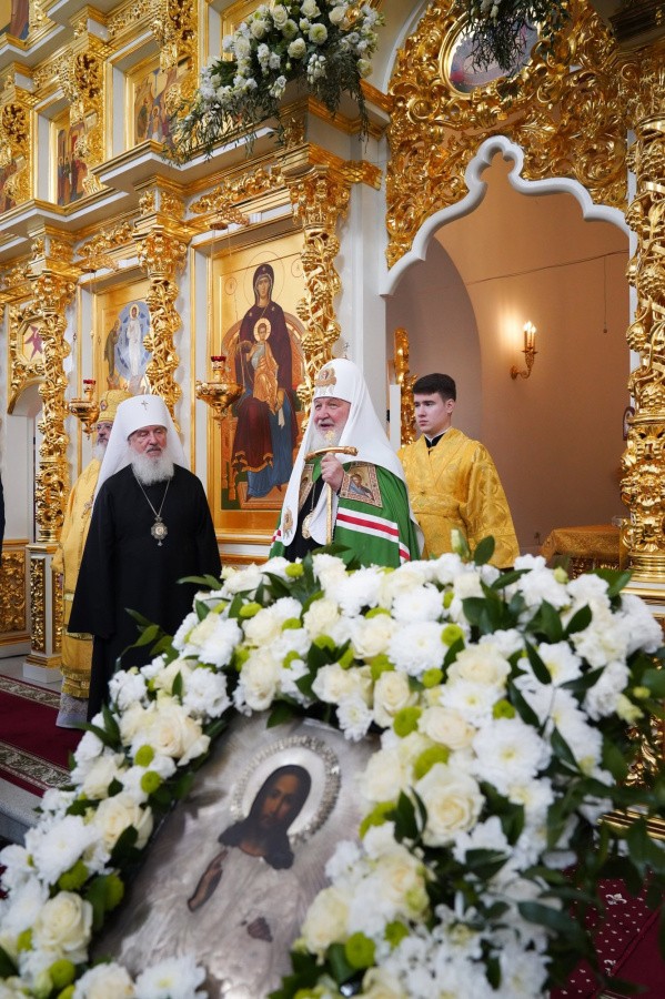 10 июня 2023 года, в день отдания праздника Пятидесятницы, Святейший Патриарх Московский и всея Руси Кирилл совершилБожественную литургию в храме Вознесения Господня в г. Тобольске. По окончании богослужения Предстоятель Русской Православной Церкви обратился к верующим с Первосвятительским словом.