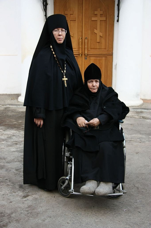 Матушка Сусанна, войдя в монастырский корпус, мы увидели нескольких стареньких насельниц, направлявшихся в трапезную. Одна шла, опираясь на палочку, другие передвигались с помощью костылей, имеющих опору под локоть. Выглядели все бодро, но возраст и болезни наложили печать на походку.