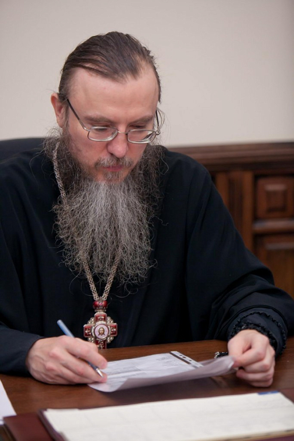 После окончания Литургии появилась возможность побеседовать с наместником монастыря архимандритом Саввой (Фатеевым).