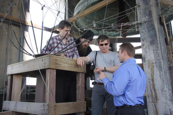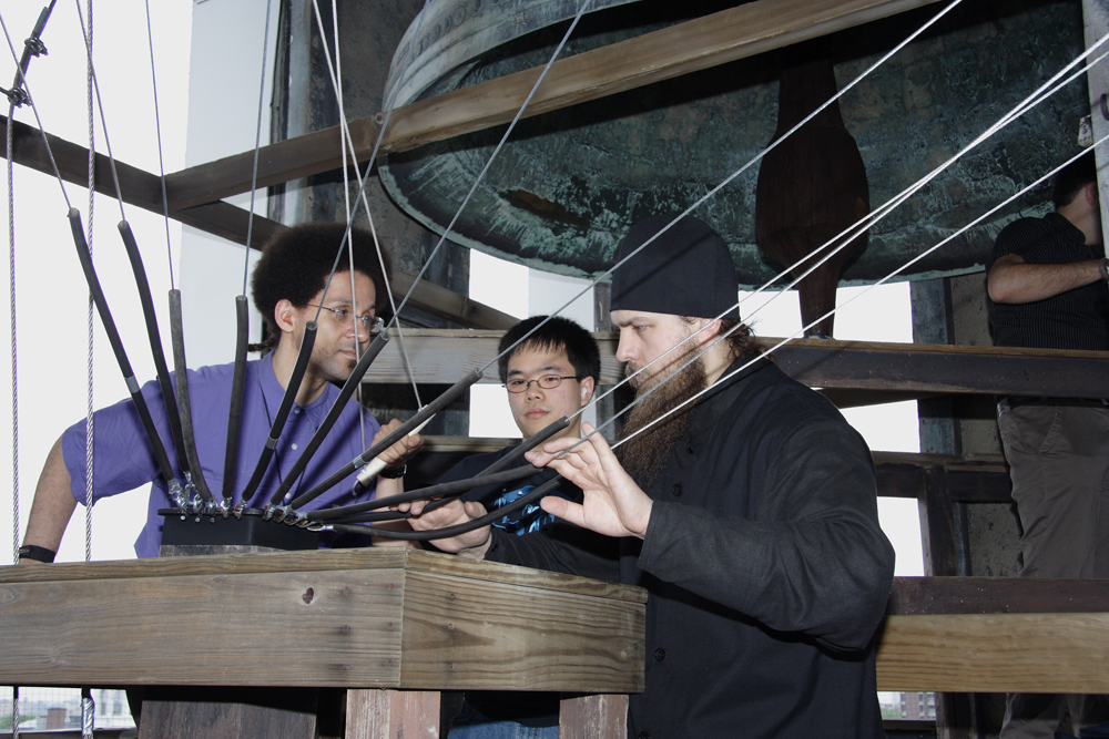 Первая группа студентов побывала у нас еще в 2004 году. Тогда ребята стремились как можно больше узнать о русских колоколах и традициях нашего звона. Мы рассказали и показали им, какое место занимает колокол в церковном богослужении; посетили разные монастыри и храмы, поднимались на колокольни, участвовали в звонах. Эта поездка, как я позже узнал, потрясла их. После нее и было принято решение регулярно устраивать подобные курсы для студентов Гарварда. К настоящему времени у нас сложилась определенная схема обучения: один год я еду в Гарвард, на следующий – мы принимаем американцев у себя в Даниловской обители. Надо сказать, что год или два назад ребята, пожалуй, более глубоко интересовались звонарным мастерством. Сейчас башня Лоуэлл Хаус переживает период реставрации, поэтому колокола недоступны для звона. Сняли лишь небольшую часть колоколов, в которые можно звонить. Но именно поэтому студенты стараются чаще приезжать в Россию. Во время их визитов мы устраиваем совместные чаепития с нашими звонарями, представляем ребят друг другу. На десятилетие возвращения Даниловских колоколов мы тоже ждем гостей из Гарварда.