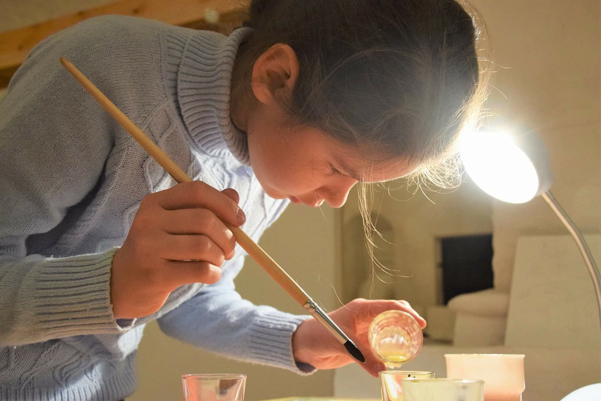 На занятиях первого года иконописного кружка дети научились растирать на стекле краски из минералов, готовить клеи и освоили сложную технику темперной живописи.