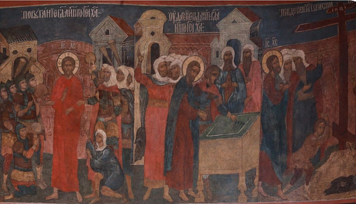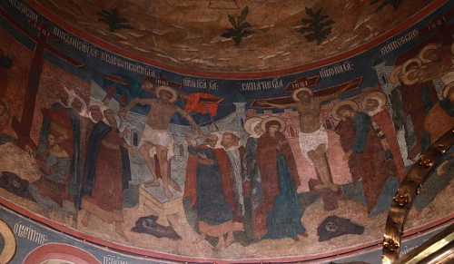 Когда мы находимся в древнем храме, на нас не давит большое количество фресок. Всё потому, что в древних произведениях очень правильно расставлены акценты: есть знаковые композиции, есть второстепенные, всё найдено по композиции, цветовому решению. Сейчас говорят – зачем ковровая роспись? Нужно учитывать то, что существует найденное решение, которое проверено веками, начиная с раннехристианских росписей катакомб. Святитель Григорий Нисский говорил, что Бог по природе своей – художник. А какой он художник? Он не скупой. Храм – это наш дар Богу. Как мы подадим его? Скупо ли? Разве мы этого хотим? Не обязательно в храме нужно одновременно смотреть на все росписи. Но бывает, например, момент, когда луч солнца попадает на какую-то композицию, и кто-то ее разглядел, и его это поразило и затронуло душу.