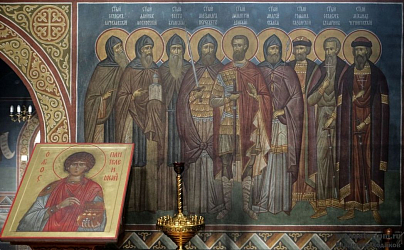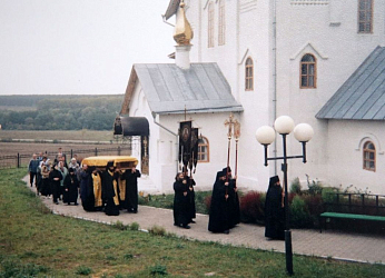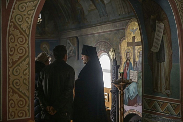Что касается богослужений, то основная часть служб проходит в Донском храме обители, полностью расписанном фресками. На фресках – сцены из жития благоверного князя Димитрия Иоанновича, вышедшего с Донской иконой в поход против монголо-татарского войска Мамая; лики многих русских князей, святителей и преподобных, а также белгородских святых, среди которых – лик священномученика Никодима (Кононова), епископа Белгородского, расстрелянного чекистами в декабре 1918 года. При постриге меня нарекли его именем... А каждую субботу, в день, установленный Церковью для поминовения усопших, в Свято-Троицком пещерном храме, где в любое время года одна и та же температура – плюс восемь градусов, служатся литургия и панихида, на которых поминаются прежде почившие священнослужители, монахи и все православные христиане. Надвратный храм с редким по красоте керамическим иконостасом пока не освящен, но мы к этому идем...