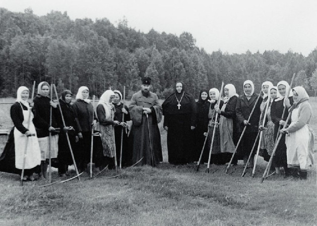 Мы бороновали, пахали, вручную косили. Все тогда делалось вручную. Электричества не было. Хлеб сами выпекали. Стояла огромная, как ее назвать – квашня? – так вот назначали трех сестер, чтобы они месили тесто. Воду приходилось носить из колодца в ведрах на коромысле. Конечно, нелегко было. Однажды благочинная назначила меня в просфорню месить тесто, и во время той непростой во всех отношениях работы я одну монахиню, мать Ираиду, попросила рассказать, что ее привело в монастырь, как я слышала, в 14 лет. Услышала от нее запомнившийся мне на всю жизнь рассказ: ей во сне явилась Матерь Божия! Но девочка-подросток не знала, что это Матерь Божия. «Вдруг, – рассказывала она, – передо мной появилась необыкновенной красоты женщина. Вся сияющая. И говорит мне: «Дочь Ирина (она до монашества была Ирина)! Ты хочешь быть Моей служанкой и жить в Моем Доме?» Та отвечает: «Хочу». Гостья опять повторяет вопрос и услышав снова ответ: «Хочу», говорит: «Приходи!» Затем стала невидима. А это была Матерь Божия. По благословению батюшки Иоанна Кронштадтского она в 14 лет и пришла в монастырь. После ее рассказа я подумала: «Боже мой! Значит мы здесь все – служанки!» И мысленно воззвала: «Матерь Божия! Возьми меня в служанки. Я тоже буду все делать! Только прости меня, если что-то я не умею делать. Я всему научусь!» И научилась. Например, сено надо было в стога складывать, затем вывозить его на лошадях. Старшая монахиня нам показала, как запрягать лошадей. Может, не сразу всё начало получаться, но потом я освоила эту «науку» и за святое послушание самую тяжелую работу делала с радостью. С радостью думала, что в нашем монастыре живут служанки Царицы Небесной. Позже матушка-игумения Рафаила взяла меня в келейницы.