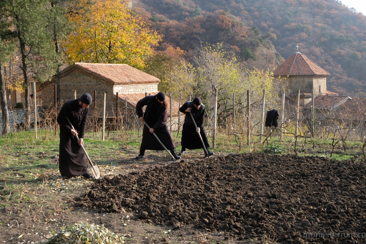 Мы черпаем вдохновение от Святейшего Патриарха Илии II и, конечно же, из творений святых отцов. Сейчас очень много книг переводится на грузинский язык. Братии особенно нравятся поучения святителя Игнатия (Брянчанинова), потому что он очень здраво всё видит, здраво оценивает ситуацию, хотя со времени, когда он писал свои творения, прошло уже полтора века. Месяц назад наш монастырь посетил митрополит Навпактский и Свято-Власиевский Иерофей (Влахос), архипастырь Элладской Православной Церкви. Он беседовал с монахами и дал нам очень много добрых советов.