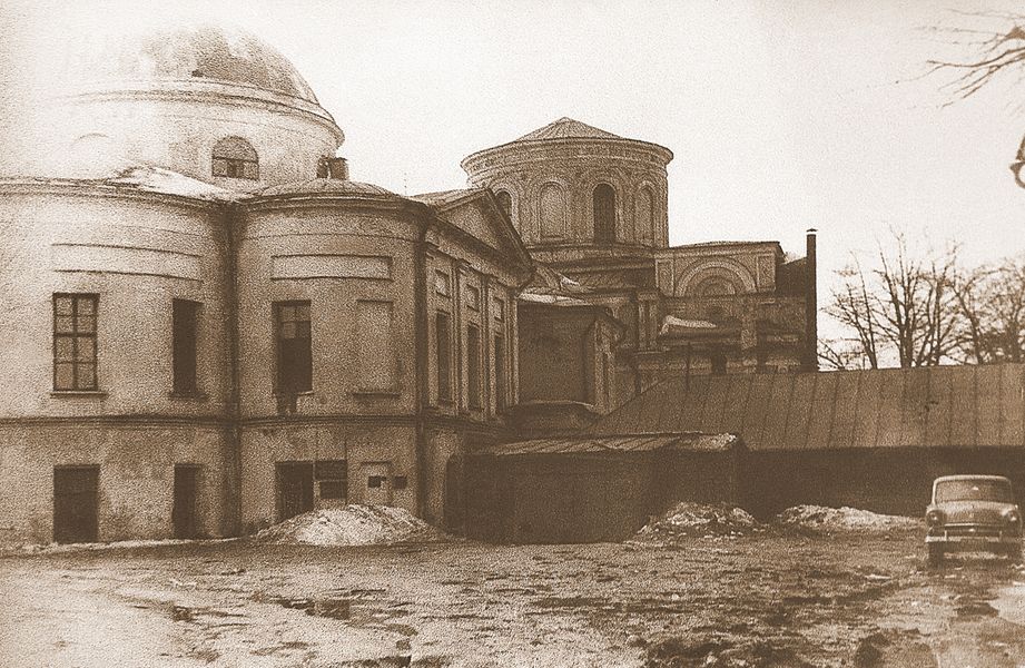 Впервые я приехала сюда в марте, это было начало Великого поста. Начало весны, слякоть, снег таял – конечно, ужасный вид. Может быть, если бы мое «знакомство» с обителью произошло летом, то зеленая травка и деревья скрасили бы то тягостное впечатление, которое было от обезображенного монастыря. Куполов на храмах не было, на крышах росли деревья и трава, не знаю во сколько слоев… Правда, что меня порадовало – на территории не было возведено никаких лишних строений, оставались только церковные здания. Хотя они были совершенно бездарно перепланированы под нужды десятков арендаторов. В Воскресенском храме было три этажа: на первом этаже спортзал, какие-то тренажеры, ночной клуб; в подвале – бильярдная, наверху, где сейчас ризница, – киностудия, часть помещений арендовали экстрасенсы и еще какие-то фирмы и организации…