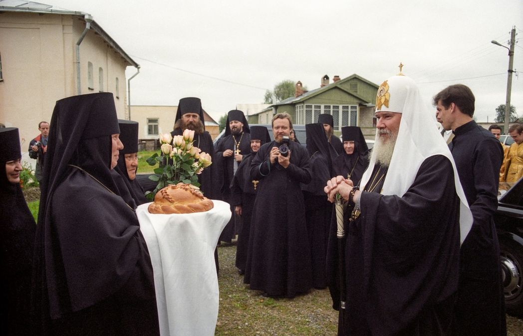 ...Помню, как крестным ходом мы шли к Московскому вокзалу в северной столице. Архиереи на руках несли раку с мощами преподобного Серафима. За ракой, опираясь на посох, шествовал Святейший Патриарх, окруженный иподиаконами. Дальше шли богомольцы со свечами. Невозможно описать всю торжественность момента проводов святыни к поезду. У Его Святейшества был такой подъем духа! Уже на вокзале я подошла к нему под благословение. Его глаза улыбались, искрились радостью. У меня в одно мгновение словно тяжесть с души спала, стало легко-легко. Я вернулась в свой монастырь, Святейший мне позвонил (он нам периодически звонил, мы ему тоже по необходимости звонили). Слышу: «Ты что, обиделась на меня? Игумения Варвара была, а ты с таким крестом! К тому же мощи никто не носит». Я расплакалась, чувствуя, что говорит он со мной не резко, не сердито, а с истинной отцовской с любовью. И попало от него, и утешение получила. Патриарх Алексий II приезжал к нам летом 1998 года. Летом 2017 года во время своего Первосвятительского визита в Новгородскую митрополию Патриарх Кирилл посетил нашу обитель и совершил Божественную литургию. И владыка Феогност, председатель Синодального отдела по монастырям и монашеству, приезжает к нам, служит.