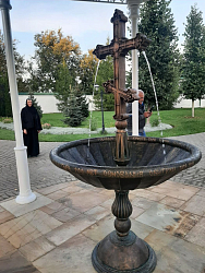 К 200-летию создания Аносиной пустыни мы построили на территории монастыря красивый фонтан. На чаше начертаны слова Иисусовой молитвы. Сестры, исполняющие послушание экскурсовода, будут останавливаться у фонтана и рассказывать людям о монашестве, а основой рассказа станут те образы, с помощью которых священномученик Серафим (Звездинский) сумел так дивно передать всю его красоту и мощь.
