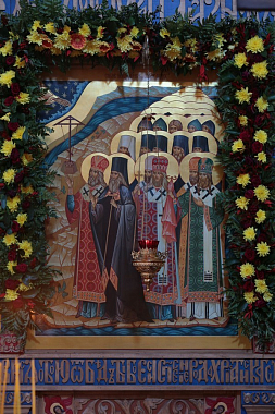 Ко времени освящения креста на некоторое время к нам привезли с Соловков большой ковчег с частицами мощей различных святых. Я могу здесь в чем-то быть не очень точным, поэтому прошу не воспринимать мои слова как истину в последней инстанции, но мне говорили, что этот ковчег как будто когда-то пребывал в одном из соборов Московского Кремля. И в Соловецком музее его называли Царским ковчегом. До 1993 года он находился в музейных собраниях Соловецкого музея-заповедника. По договоренности с руководством музея ковчег был передан на временное хранение в монастырь, а с годами так в монастыре и остался. Мы попросили этот ковчег с Соловков привезти, потому что тогда у нас было совсем пусто и никаких святынь не было. А в нем – огромные частицы святых мощей великомученика и целителя Пантелеимона, великомученика Георгия Победоносца, что особенно для нас ценно, поскольку наш храм сохранил свое древнее посвящение этому святому, хотя главный придел – в честь Рождества Пресвятой Богородицы.