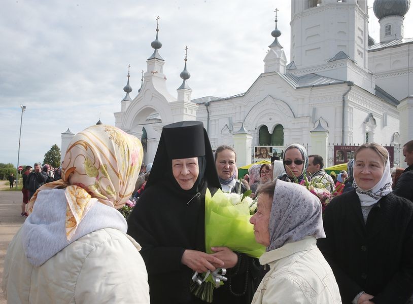 Как о нем не вспоминать, если волю Божию ты узнавал через старческое окормление? Для решения каких-то сложных вопросов старец Наум некоторых своих духовных чад направлял к Любушке Сусанинской, которую он очень чтил. Ездила к ней и я. Сама ездила и маму к ней возила с горячим желанием приблизить мамочку к Богу, такому для нее в те годы далекому и неведомому. Мама долго шла к вере, а на 93-м году жизни приняла монашеский постриг с именем Ангелины, в честь Сербской деспотиссы. Умерла она в 96 лет, последние годы проведя под покровом обители. И могилка ее находится на нашем монастырском кладбище, то есть мама с нами. Но это другая тема. Сейчас же – о старице… Когда меня как старшую инокиню с несколькими сестрами из Толги благословили заняться возрождением Никольского монастыря, я поехала в Сусанино и стала рассказывать Любушке, что там – руины. Что собор взорван, а где была звонница, теперь пустое место. И от ограды почти ничего не осталось. Не монастырь, а проезжая дорога! С чего начинать? Вот тогда мне Любушка и сказала: «Иди к Патриарху!» И дала денежку на благословение со словами: «Чтобы денежки были!» Она у меня до сих пор хранится в шкатулке со святынями – денежка от Любушки. А к Патриарху Алексию мы с сестрами приехали на день памяти благоверного князя Даниила Московского и преподнесли ему частицу мощей преподобного Даниила, Переславского чудотворца. Помню, выстроились мы во дворе в Чистом переулке, сделали поклон Святейшему, вкратце рассказали ему о монастыре. А в канцелярию я отнесла письмо на его имя с просьбой оказать нам помощь, так как у нас нет этого, этого и этого (многие наши нужды я назвала). Спустя какое-то время мне звонят из епархии, и владыка Михей – к тому времени он возглавил Ярославскую кафедру – говорит: «Матушка, Вас к Святейшему вызывают! Завтра нужно быть в Чистом переулке». Приезжаю туда на следующий день, и мне сообщают, что Патриарх благословил отгрузить монастырю богослужебные книги, поскольку в письме на его имя я писала, что в них большая нужда. И для нас это было такое сокровище! Первый комплект богослужебных книг – это дар Патриарха Алексия II. Мы были обогреты Первосвятительской любовью с самого начала.