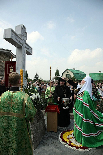 Хорошо, давайте начнем с него, потому что то событие действительно имело огромное значение для всех нас, собрав в июле 2009 года около 10 тысяч богомольцев. Наш старец схиархимандрит Зосима в своем завещании написал, что главный монастырский собор он завещает освятить Святейшему Патриарху Московскому и всея Руси, и вот на наших глазах исполнялись батюшкины слова, воплощались в жизнь. Это было очень трогательно и трепетно. Мы тщательно готовились – я сильно волновалась, ведь на тот момент я была игуменией монастыря всего лишь один год, мне в ту пору исполнилось 33 года. (Мое возведение в сан игумении состоялось 7 апреля 2008 года, а перед этим пару лет я несла здесь послушание старшей сестры). У Святых врат обители рядом с надвратным Иверским храмом мы с братьями и сестрами встречали Святейшего. Мне было поручено преподнести высокому гостю хлеб-соль и произнести приветственное слово. Накануне я старательно заучивала речь, чтобы от волнения ничего не забыть. Сам момент встречи прошел красиво и торжественно, и мы крестным ходом последовали в Успенский собор, а по пути остановились возле церковной лавки. Рядом с нею был установлен белый мраморный крест, воздвигнутый в память о посещении обители Святейшим Патриархом. Святейший освятил крест, окропил его святой водой, и мы двинулись дальше. И этот крест, несмотря на страшные обстрелы, прилеты рядом, уцелел. Вокруг него всё выбито, а крест, немного посеченный осколками, стоит!