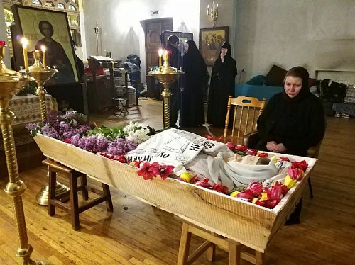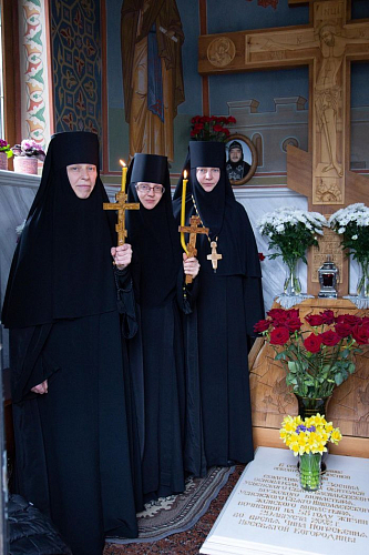 Маму похоронили на территории монастыря, перед Успенским собором. Каждое утро после нашего монашеского правила я захожу в часовню к батюшке Зосиме, кланяюсь ему, прошу молитв и сразу иду на могилку мамы, молюсь на ее могилке. А матушку Савву похоронили на сестринском кладбище в Свято-Касперовском женском монастыре, где сейчас проживают наши эвакуированные пожилые матушки. (Это позволило присутствовать на отпевании родным и близким убиенной).