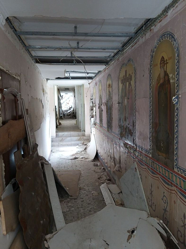 Во всех. Поочередно. Должна сказать, что богослужения в нашей обители в Никольском никогда не прекращались, даже при самых сильных обстрелах Литургия совершалась каждый день. День в монастыре начинается в 5 часов утра. Служится панихида, затем в 6.00 утренние молитвы, полунощница, акафист и Божественная литургия. После Литургии – трапеза, уборка храма, выполнение необходимых для поддержания жизнедеятельности дел. Затем – дневной отдых, и в 16.00 начинается вечернее богослужение: вечерня, утреня, повечерие, вечерние молитвы, каноны и заупокойная лития. День начинается и заканчивается поминанием основателя обители схиархимандрита Зосимы. Сестры, которые эвакуировались в 2022 году, готовы прямо сейчас вернуться в родной монастырь. Но все здания здесь разрушены, и нет, как я уже говорила, никаких коммуникаций. Нет электричества, воды, газа, тепла. Включаем генератор по часам, чтобы накачать воду из скважины, зарядить power banki, телефоны, аккумуляторы и прочее. Сестринский корпус после прилета «Хаймерсов» очень сильно поврежден, но моя келья, на удивление, целая, только нет крыши, течет вода с потолка...