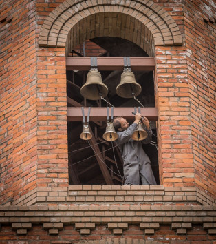 На тот момент, когда мы сюда пришли, здесь действительно было лишь обветшавшее здание храма – восемьдесят процентов крыши отсутствовало. Кровля была только над небольшой его частью, и именно там мы оборудовали наш первый временный храм, в котором служили первое Рождество Христово и первую Пасху. Сейчас здесь находится иконная и книжная лавка, а тогда в комнате размером шесть на шесть метров нам как-то удалось разместить алтарь, клирос, лавку и помещение для прихожан. В 2002 году мы сделали крышу, после чего богослужения стали совершаться уже в основном храме, а в монастыре со временем начали появляться новые постройки: братский корпус, котельная, ферма, трапезный корпус, гостиница, колокольня, привратницкая с кафе для паломников и так далее. Всё это потребовало немалых усилий и финансовых средств. Строили мы потихоньку год за годом, не привлекая профессиональные строительные фирмы. Из наемных специалистов у нас были инженерно-технический работник или прораб и несколько рабочих. Мы приступали к возведению того или иного объекта тогда, когда появлялись средства. Например, колокольню начали возводить в 2015 году – в год по этажу...