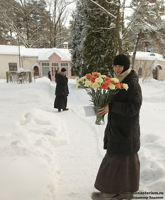 Возрождение монашеской жизни в Серафимо-Знаменском скиту Московской епархии было положено 27 января 2000 года, в день памяти святой равноапостольной Нины, имя которой носит нижний придел храма. По благословению митрополита Крутицкого и Коломенского Ювеналия в скит переехали несколько сестер из Коломенского Свято-Троицкого Ново-Голутвина женского монастыря. К престольному празднику, навсегда соединившемуся с днем возрождения обители, сестры нынче готовятся с особым подъемом, потому что недавно, 22 декабря 2016 года, Священный Синод Грузинской Православной Церкви канонизировал основательницу и первую настоятельницу Серафимо-Знаменского скита схиигумению Фамарь (Марджанову). О том, каким было начало жизни сестринской общины, какие утешения посылала насельницам матушка Фамарь и о многом другом мы говорили накануне праздника с настоятельницей скита игуменией Иннокентией (Поповой).