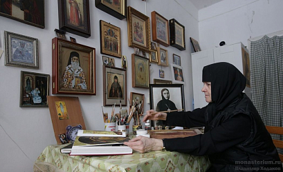Были (и сегодня они, слава Богу, есть) и утешения, и радостные моменты, многие из которых мы прочно в своем сознании связываем с именем матушки Фамари. Большое утешение я с сестрами получила, когда в наш красивый шатровый храм вернулась икона Божией Матери «Знамение», написанная к открытию скита в 1912 году, то есть икона времен Матушки. И все сразу почувствовали: Хозяйка пришла! Видя наше бедственное положение, некоторые приходские батюшки стали присылать в помощь своих духовных чад – девушек, женщин, имевших желание потрудиться во славу Божию. Как я уже упоминала из-за тяжелых бытовых условий болезни не заставили себя ждать. Хочется особо отметить, что грузинские врачи из числа паствы московского храма в честь святого великомученика Георгия Победоносца в Грузинах, почитавшие свою соотечественницу схиигумению Фамарь, многое для нас сделали. Они находили нам профильных специалистов, договаривались о лечении. А по сути – помогали нам выживать. И как-то с одной девочкой, застудившей почки, я поехала в Москву, в клинический центр института имени Сеченова, где пришлось провести целый день. Устали, измучались, я говорю спутнице: «Катя, здесь рядом Дом-музей художника Павла Корина, давай зайдем. Ты увидишь портрет матушки Фамари». Пришли туда. Кате совсем плохо стало, она опустилась на стоявший в коридоре сундучок, оказавшийся историческим экспонатом, а я направилась к портрету. Подошла, стою и вдруг из души вырвался крик: «Матушка, ну хоть какое-нибудь утешение нам дай! Сил никаких больше нет!» На следующий день в магазине (а я была в апостольнике) подходит ко мне мужчина в возрасте и начинает расспрашивать о чем-то, касающемся религиозной темы. Я пытаюсь отвечать и – это было помимо моей воли! – задаю ему вопрос, который, по логике вещей, могла бы задать краеведу или историку, но никак не случайному человеку: «А вы случайно не видели у кого-нибудь где-нибудь в Редькино или Судаково икону Божией Матери с поднятыми руками?» Мужчина растерялся. Но слышавший наш разговор продавец сказал, что в этой семье и вправду кое-что есть. В итоге мы отправились в гости к Вячеславу (так звали того человека), зашли на кухню, где что-то кипело, булькало в кастрюле, и слева за холодильником, под потолком висела икона, о которой я спрашивала. Сильно потемневшая, но глаза Богородицы были словно лучик надежды. Пожалуй, около года та семья не решалась отдать нам этот образ: мы ездили к ним, они – к нам. А 1 августа 2003 года, на 100-летие прославления преподобного Серафима Саровского, в скиту был престольный праздник, архиерейское богослужение. Выходим мы из храма – идем крестным ходом и видим Вячеслава, его супругу Фаину, их родственников, шествующих навстречу нам с иконой. На солнце она ожила, засияла, невозможно было оторвать глаз от лица Матери Божией и Ее очей – бездонных и кротких-кротких... Вот и послала нам Пресвятая Богородица утешение по молитвам матушки Фамари.