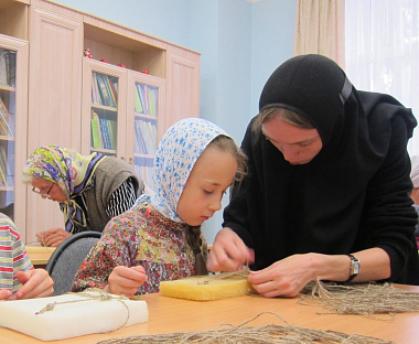 Пришлось организовать 4-й курс для углубленного изучения некоторых предметов. Вначале и в школе, и на курсах преподавали в основном сестры монастыря, но сейчас мы стали больше прибегать к помощи более квалифицированных преподавателей – священников, преподающих в Пермской духовной семинарии, преподавателей вузов. К тому же диапазон преподаваемых предметов значительно расширился. В 2013 году для воскресной школы мы построили отдельное здание с просторными классами (теперь там учится 260 ребят) и храмом апостола Иоанна Богослова. Но у катехизаторских курсов до сих пор существует проблема с помещением. Пока что занятия проходят в библиотеке, расположенной в игуменском корпусе. А сестры монастыря и сейчас принимают самое живое участие в работе школы и курсов, начиная уже с того, что для слушателей организовывают традиционное незатейливое угощение – булочки с компотом, чтобы после Литургии (или в будние дни после работы) люди могли бы немного подкрепиться.