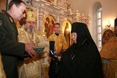 Мне сразу вспомнился один примечательный эпизод, связанный с духовником матушки Ангелины – лаврским старцем схиархимандритом Михаилом (Балаевым). На каком-то этапе возникли непростые вопросы в отношении земельного участка для будущего монастыря. И матушка Ангелина отправилась в Троице-Сергиеву лавру за духовным советом к отцу Михаилу. Он ее выслушал, после чего благословил поехать в Дивеевскую обитель, где сестры восстанавливали Канавку. Мы поехали вдвоем – помолились у мощей преподобного и по окончании Божественной литургии взяли немного земли из Канавки. У себя, как благословил старец, после совершения молебна преподобному Серафиму Саровскому мы с матушкой Ангелиной и послушницами обошли крестным ходом будущее монастырское поле, рассыпав по периметру дивеевскую землю. Через некоторое время все проблемы решились, на поле установили большой поклонный крест, и в конце 2009 года епископ Смоленский и Вяземский Феофилакт (ныне – архиепископ Пятигорский и Черкесский) совершил у него литию о павших воинах.
