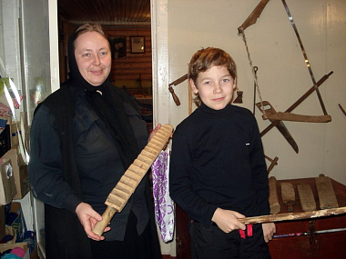 Не могу не упомянуть и о послушании, связанном со служением в миру. Вот уже более 14 лет по инициативе монастыря при средней школе соседнего поселка Рассвет действует клуб «Родник». Вместе с педагогами школы в нем трудятся сотрудники обители, а из насельниц – я и наш регент. В клуб принимаются все желающие: со 2-го по 4-й класс – в младшую группу «Родничок», с 5-го по выпускной – в старшую. Это принципиальный подход, чтобы каждый мог раскрыть свою индивидуальность независимо от тех или иных способностей. Задачей клуба является духовно-нравственное воспитание и передача школьникам традиций отечественной культуры в ее неразрывной связи с христианской православной верой. Сейчас в основном работа идет над постановкой спектаклей по классическим произведениям русской и зарубежной литературы, а также устройством календарных праздников как церковных, так и народных – это Рождество, Пасха, Масленица. Спектакли ставятся полноценные: от сорока пяти минут до полутора часов.