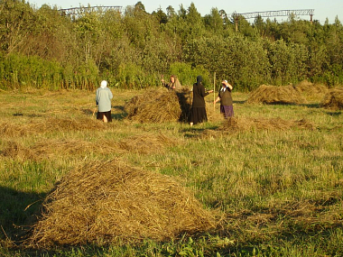 Нас очень немного: десять насельниц в монастыре вместе со мной, двое – в Никольском скиту в 25 км от обители и одна – на подворье монастыря в Санкт-Петербурге (храм святой благоверной княгини Анны Кашинской). Послушания самые обычные: скотный двор и огороды, в алтаре и свечной лавке, в трапезной и бухгалтерии. На клиросе поют все, кто к этому способен, совмещая с основными послушаниями. Одна из сестер пишет иконы для монастыря, другая отвечает за прием паломнических групп и экскурсионную работу. Каждая сестра совмещает по несколько послушаний.