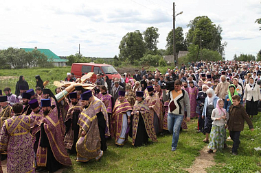 Думается, в сердце каждого, кто приезжал в Годеново поклониться Животворящему Кресту Господню, запечатлелась история его явления пастухам на Сахотском болоте близ Ростова Великого в 1423 году. И зарубкой в памяти людей осталось то, что явилось это резное изображение Спасителя на Кресте в полный человеческий рост «с греческой стороны», то есть из Византии. Теперь широко известна и история второго его обретения – уже в наше время. Но вернемся к дням и годам, когда Вы с сестрами еще мало что знали о святыне и собирали сведения по крупицам, записывали первые чудеса. Матушка, кто вам помог увидеть взаимосвязь явления чудотворного Креста среди глухих лесов и болот и судьбоносных событий истории Российской и Вселенской?