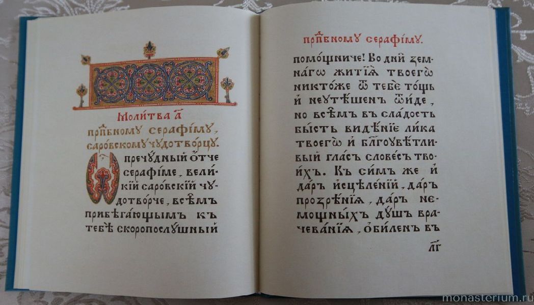 Самая наша замечательная находка в РГБ – рукописный акафист преподобному Серафиму Саровскому, который в 1917 году написал Иван Гаврилович Блинов – выдающийся каллиграф, художник-миниатюрист начала ХХ века. Рукопись акафиста он подарил Румянцевскому музею. Мы впервые предприняли ее репринтное издание.