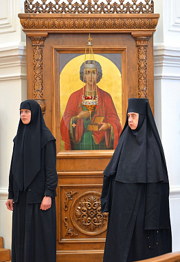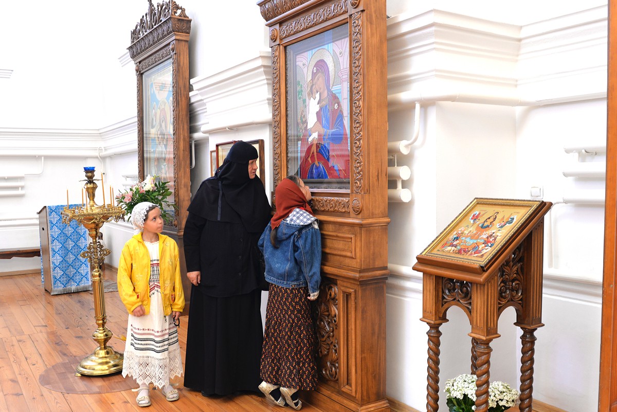 К радости насельниц Господь послал нам очень хорошую бригаду сербов. В свое время они работали в скиту и, узнав, что меня назначили восстанавливать новую обитель, предложили свою помощь. За три года они полностью отреставрировали Вознесенский собор и даже восстановили лепнину на колоннах и по внутреннему периметру здания. Со временем мы смогли поставить красивый иконостас, иконы для которого выполнили в старинной технике письма художники из Подмосковья. Постепенно в обитель стали возвращаться старинные иконы, среди них образ святого великомученика и целителя Пантелеимона, написанный на Афоне, хранившийся после закрытия монастыря у жительницы села Тюнино.