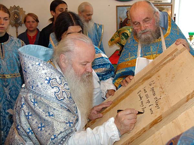 Все эти годы владыка Никон относился к нам с отеческой заботой –стремился разделить с нами не только трудности строительства, но и духовную радость. На всю жизнь останется в памяти первая служба в нашем соборе. Так же как и в скиту, она состоялась на Пасху – 4 апреля 2010 года, через 80 лет после закрытия монастыря. Радость на душе была поистине пасхальной! Звонница тогда стояла еще на земле, и после службы каждый имел возможность по русской традиции звонить в колокола, прославляя Воскресшего Христа в воскресшей обители.