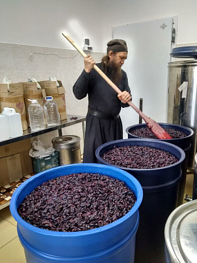 И вот на сегодня результат всех трудов: почти полтора гектара виноградных угодий, около 150 плодоносящих сортов, среди которых есть и выведенный в 2014 году «Селигер»; первый рекорд урожая – 4,5 тонны, первые опыты производства церковного вина, множество единомышленников, ставших за прошедшие годы друзьями монастыря. Но ведь помимо этого – еще немалое агрохозяйство с овощными и садовыми культурами, современными технологиями, техникой. И «битвы за урожай» – сражения с непростым климатом, почвами в зоне рискованного земледелия, и даже с селигерскими пернатыми, во множестве норовящими поживиться трудами монашеских рук (немалые площади посадок приходится накрывать сеткой). Кстати, этих рук в хозяйстве всегда не хватает; хоть братия и помогает по послушанию, и приезжают добровольные помощники, но львиная доля всех работ на земле – это все равно крест и ответственность иеромонаха Фаддея.