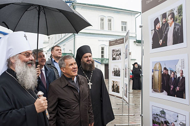Президент Татарстана Рустам Минниханов, для которого эта юбилейная дата тоже много значила, был приглашен владыкой Кириллом. Повторюсь, что Рустам Нургалиевич дружил с отцом Всеволодом, бывал в монастыре, вносил свою лепту, помогая обители вставать на ноги, и для нас было важно ощутить некую преемственность в общении с Президентом Республики, с ее властями. И особенно важно было показать, что монастырь развивается, что его посещает всё большее количество паломников, туристов и в нем развивается монашеская жизнь и социальное служение. Это был ответственный момент. Познакомившись с интерактивным музеем истории Раифского монастыря, где четыре столетия истории древней обители представлены на четырех этажах угловой башни XVII века, Президент высоко оценил такой нестандартный подход к устройству музея, к использованию интерактивных элементов. Многое вызвало его интерес, в том числе и некоторые вещи, предусмотренные для детей. Например, киноролики по истории монастыря и по истории святой чудотворной Казанской иконы Божией Матери, явившейся в XVI веке во граде Казани, после чего судьба этого образа Богородицы стала неразрывной с судьбой Государства Российского. Тепло и сердечно отозвался высокий гость о Раифском монастыре как об одной из жемчужин Республики.