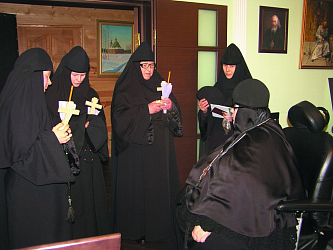 Мне часто задают этот вопрос. Я отвечаю: «С молитвы. По молитвам Господь все дает». Привожу своим собеседникам слова из Псалтири, которые объясняют, как может кому-то показаться, людские достижения: «Аще не Господь созиждет дом, всуе трудишася зиждущий» (Пс.126, 1). Приехала я сюда 22 мая, на праздник святителя Николая, а 26 мая в 1991 году был праздник Святой Троицы. Владыка Евлогий сказал: «Ну, обедницу там послужите». – «Нет, – говорю, – Владыка. Монастырь Свято-Троицкий, нужно служить по полному уставу, как положено». Мы малую вечерню с акафистом служили, Всенощное бдение с литией. Утром – молебен с водосвятием, Литургию. Крестный ход совершили. Потом у пришедших на богослужение людей спрашиваю: «А вы хотите, чтобы был монастырь в Муроме?» Бабушки сразу: «Конечно, хотим! Очень даже хотим!» Я им: «Давайте молиться!» Раздали всем акафисты, Псалтирь, всем дали читать по кафизме. Где-то с полгода они читали (полностью вычитывалась Псалтирь и 20 акафистов), пока в монастыре не образовалась монашеская семья. Затем мы сами стали читать Неусыпаемую псалтирь и акафисты.
