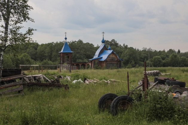 Мы когда-то жили в Москве. У меня была однокомнатная квартира с окнами на храм мученика Трифона на «Рижской». И мы искали место для мастерской. Необходимо было больше пространства, чтобы картины писать. В Москве не получилось мастерскую заиметь, и мы стали искать где-то на стороне. Как-то с нашими друзьями попали в Ярославскую область, в эти леса, и здесь я увидел этот храм. Он и тогда был действующим и вообще никогда не закрывался. Батюшка здесь был и три-четыре женщины при нем. Народ, живущий рядом, приезжал на праздники. Приехать сюда было сложно, приходилось довольно долго идти пешком по дороге, по грязи или снегу. И вот это уединенное место стало для нас убежищем от городской жизни. Церковнославянский язык мы уже знали, потому что я тогда писал картины с житиями святых, и мне надо было читать о них, мы доставали старые книги, и по ним изучили церковнославянский. Стали ходить в этот храм, жена моя, будущая матушка, стала помогать старушкам на клиросе, а батюшка, отец Иоанн Семенов, взял меня в алтарь, я ему там помогал. И потихоньку мы начали тут осваиваться. Мы были только недавно крещены. Я в 34 года крестился, нас с женой вместе дома крестили.