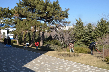 Интересно, что и раньше, до закрытия нашей обители в 1929 году, в монастыре был большой розарий. Эту традицию мы стали возобновлять незаметно для себя. Сначала прихожане приносили нам саженцы разных цветов, но преимущественно роз. Наш южный климат очень подходит для выращивания большинства сортов роз, и они с весны до первых заморозков радуют всех своими яркими красками. Позже нам стали приносить редкие сорта роз. Появились среди наших помощников и коллекционеры роз, которые охотно помогают сестрам создавать такую красоту на территории монастыря. Я сама люблю принимать участие в оформлении клумб и озеленении монастырской территории, правда, времени на это совсем нет... На монастырских клумбах трудятся и сестры, и прихожане, и профессиональные садоводы. И всё, что они делают, делают они с любовью к природе, а главное – к Богу, желая украсить обитель как скромное подобие райского сада на земле. Когда в начале 90-х годов мы стали восстанавливать монастырь из руин и развалин на пустыре, заросшем сорной травой, то просто некогда было думать о деревьях и цветах. Разумеется, нам очень хотелось, чтобы росли здесь и высокие с раскидистой кроной деревья, и источали свой неповторимый аромат сосны, и радовали глаз стройные туи, а также чтобы были разбиты цветочные клумбы. Только тогда эти желания казались несбыточными. Лишь спустя какое-то время, причем немалое время стала облагораживаться монастырская территория, и это потребовало от нас кропотливого труда. Но сегодня сестры, прихожане, гости, паломники, беженцы – да что там говорить, буквально все отмечают, что любо-дорого смотреть на такую красоту!