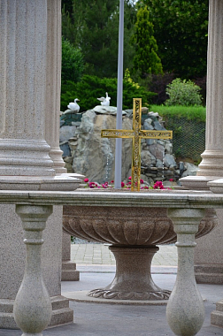 Приняв в сердце эту боль, в заключение беседы всё же хочется перейти от кровоточащей темы к теме радостной. Вот Вы, матушка, видите со своими сестрами множество людей – паломников, гостей, туристов, беженцев и так далее. И что, как Вам кажется, в первую очередь привлекает взгляд человека, когда он входит в ограду обустроенной обители, окруженной многоэтажками одного из городских районов, и начинает осматриваться? Что (разумеется, кроме храмов), способно произвести на впервые сюда приходящих особое впечатление?