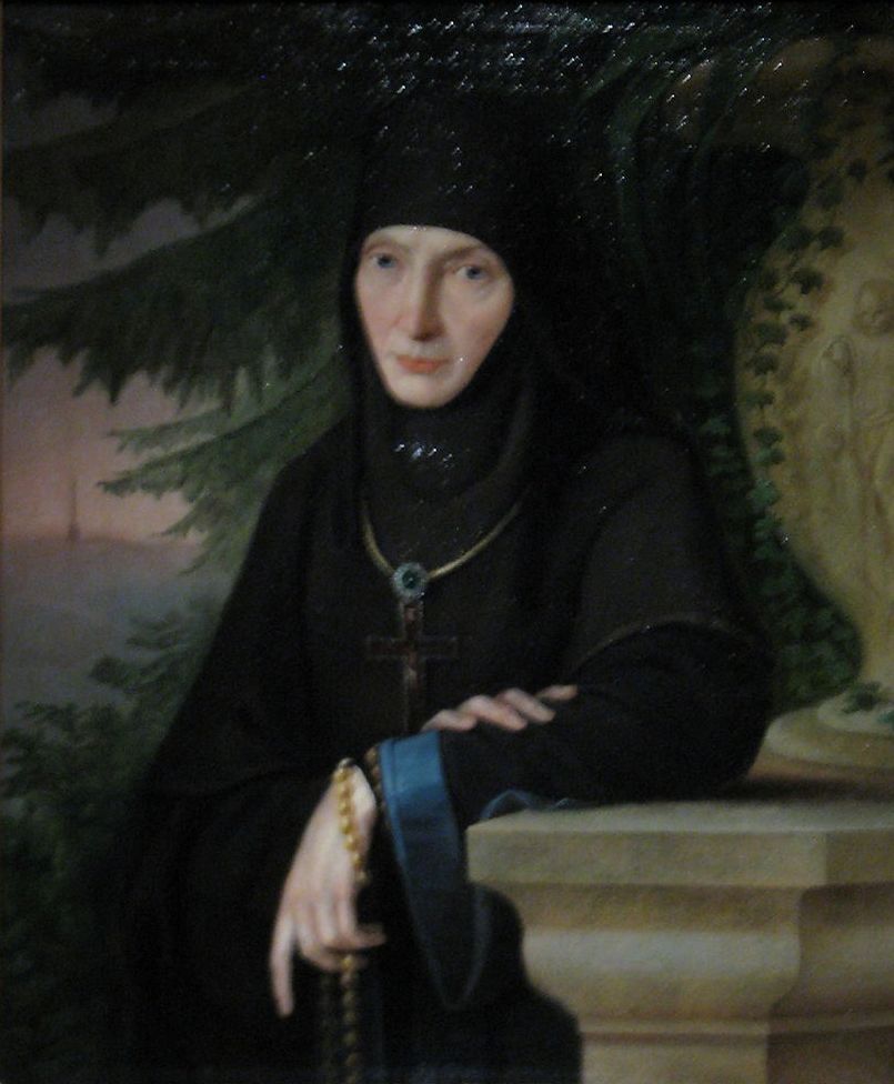 Находясь в стесненных обстоятельствах и не зная, как быть дальше, она решилась обратиться к митрополиту Филарету, с готовностью принять и исполнить любой его совет. Владыка посоветовал ей вернуться в Спасо-Бородинский монастырь к игумении Марии, которой к тому времени стала, приняв монашество, Маргарита Тучкова. А сам, чтобы избежать возможных раздоров в обителях, письменно обратился к игумениям обоих монастырей с советом, как лучше поступить в сложившейся непростой ситуации. Так к игумении Марии он писал: «Мир преподобной игумении Марии, и сестрам, и обители! Вопрос о девице Н. трудно разрешить благонадежно. Она жила у вас, и потом не захотела жить; потом жила в Одигитриевском общежитии, и опять не захотела жить, хотя и там, так же, как у вас, было о ней попечение. Посему не могу сказать решительно: “Примите ее”. Притом же ваша обитель наполнена и переполнена. Одно заслуживает внимания: у вас осталась келья, принадлежавшая девице Н. По уважению к сему обстоятельству, вот что можете сделать. Предложите старшим сестрам: согласятся ли они иметь ее в обители месяца три как сестру-гостью. Если согласятся, примите ее на сие время, не обязываясь на дальнейшее. Когда же пройдет сие время, тогда смотрите, мирна ли она с сестрами и они с нею, и смотря по тому, опять совещайтесь с сестрами, согласятся ли принять ее решительно. Если и согласятся, надобно поместить ее не широко, без стеснения сестер, занявших места в обители прежде нынешнего ее прихода.