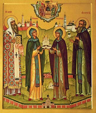 Союзом любви ко Христу и стремлением к воплощению заветов древних отцов об истинно монашеском житии неразделимо связаны святитель Алексий Московский, Игумен земли Русской Сергий и преподобные матери Иулиания и Евпраксия.