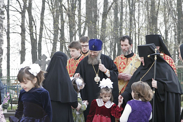 Память святых преподобномучениц совершается 18 июля, в день их смиренной мученической кончины, и именно этот день считается днем рождения обительской приемной семьи. Однако сам праздник, само торжество владыка Алексий перенес на 19 июля. Накануне, когда Православная Церковь празднует обретение мощей преподобного Сергия Радонежского, архиерей служит Божественную литургию в Сергиевском храме в Туле, 19 июля – в Горелках. И тоже в связи с визитами владыки сестры вспомнили столько трогательных случаев! Так однажды он приехал в монастырь, дети его плотным кольцом окружили, а Христина, которая была совсем маленькой, со всей непосредственностью громко спросила: «И где там наша мама?» – «Как приятно это слышать!» – улыбнулся владыка. Кстати, 19 июля девочки полностью всю службу поют.