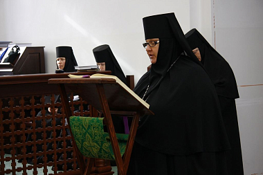 День начинается с молитвы: практически ежедневно в обители совершается Божественная литургия, на которой присутствуют все сестры, за исключением тех, кто готовит трапезу на кухне. Сестры участвуют в приготовлении трапезы по очереди, в остальное время они заняты на других послушаниях и в эти дни имеют возможность молиться за Литургией. По уставу утром у нас совершается полунощница, молебен преподобному Стефану Махрищскому, Литургия. Затем у сестер есть один час свободного времени, которое отводится на чтение какой-либо части келейного правила. Келейное правило сестер имеет основой правило Оптиной пустыни. Для монахинь – пятисотница, для инокинь – трехсотница, совершаемые по четкам, также чтение трех канонов и акафистов. В 10.30 в монастыре общая трапеза, после которой все расходятся на послушания. В 16.00 – вторая трапеза, в 17.00 – вечернее богослужение. В зимнее время в основном все послушания оканчиваются к 16.00, сестры имеют возможность помолиться за вечерним богослужением. В летнее время увеличивается число хозяйственных забот, поэтому уже не все могут быть на вечерней службе. Вечернее богослужение оканчивается около 20.30, сестры расходятся по кельям. В основном у нас живут по двое, за исключением некоторых монахинь, как правило, пожилых.
