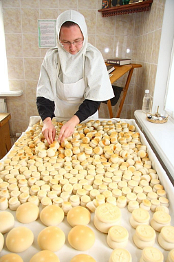 В течение нескольких лет монастырь занимается реализацией своей продукции – это выпечка, молочные продукты, яйца. В хозяйственной и торговой сферах нам помогают наемные работники, а возглавляют эти послушания сестры.