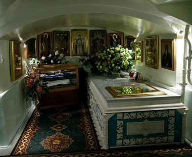 Батюшка знал, что инокиня Татьяна приняла монашество с именем Серафимы - в честь преподобного Серафима Саровского - и спустя некоторое время стала настоятельницей Свято-Иоанновского монастыря в Санкт- Петербурге. Вскоре он передал ей через одного человека... схимническое облачение, что, конечно, поразило ее до глубины души. Ведь принять великую схиму - значит достигнуть высшей степени монашества. Но она еще такая молодая, неопытная во многих духовных вопросах! Так облачение (неизвестно, кому оно прежде принадлежало) и пролежало у матушки до декабря прошлого года. А в декабре она его достала и была в него облачена при постриге. В нем ее и похоронили.