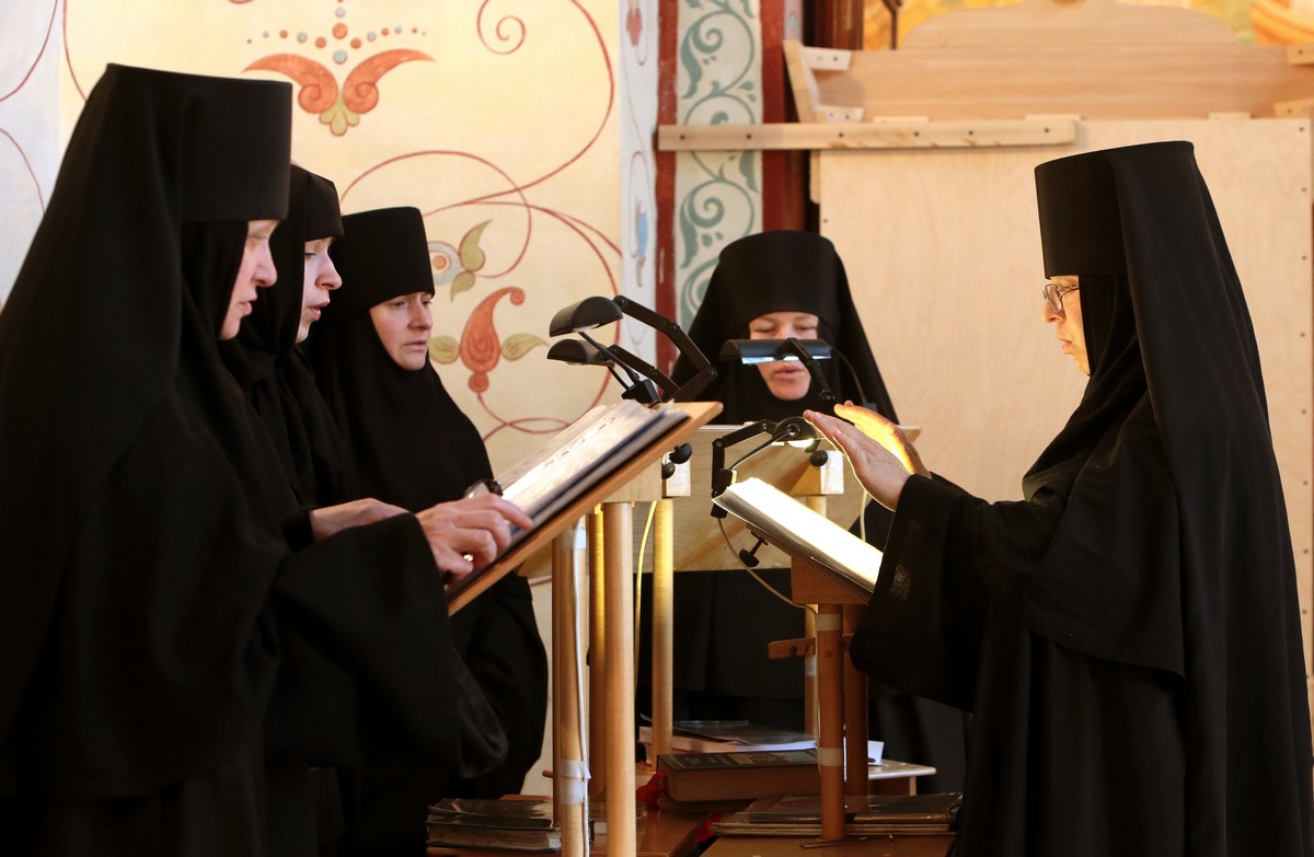 monasterium.ru akatovo 2014-04-30 05Клирос в нашей обители является постоянным общим послушанием – поют все, кто может, независимо от способностей, которые, вообще-то, есть у всех. Присутствуя на клиросе, легче всего научиться разбираться в церковном Уставе, молитва становится осмысленной.